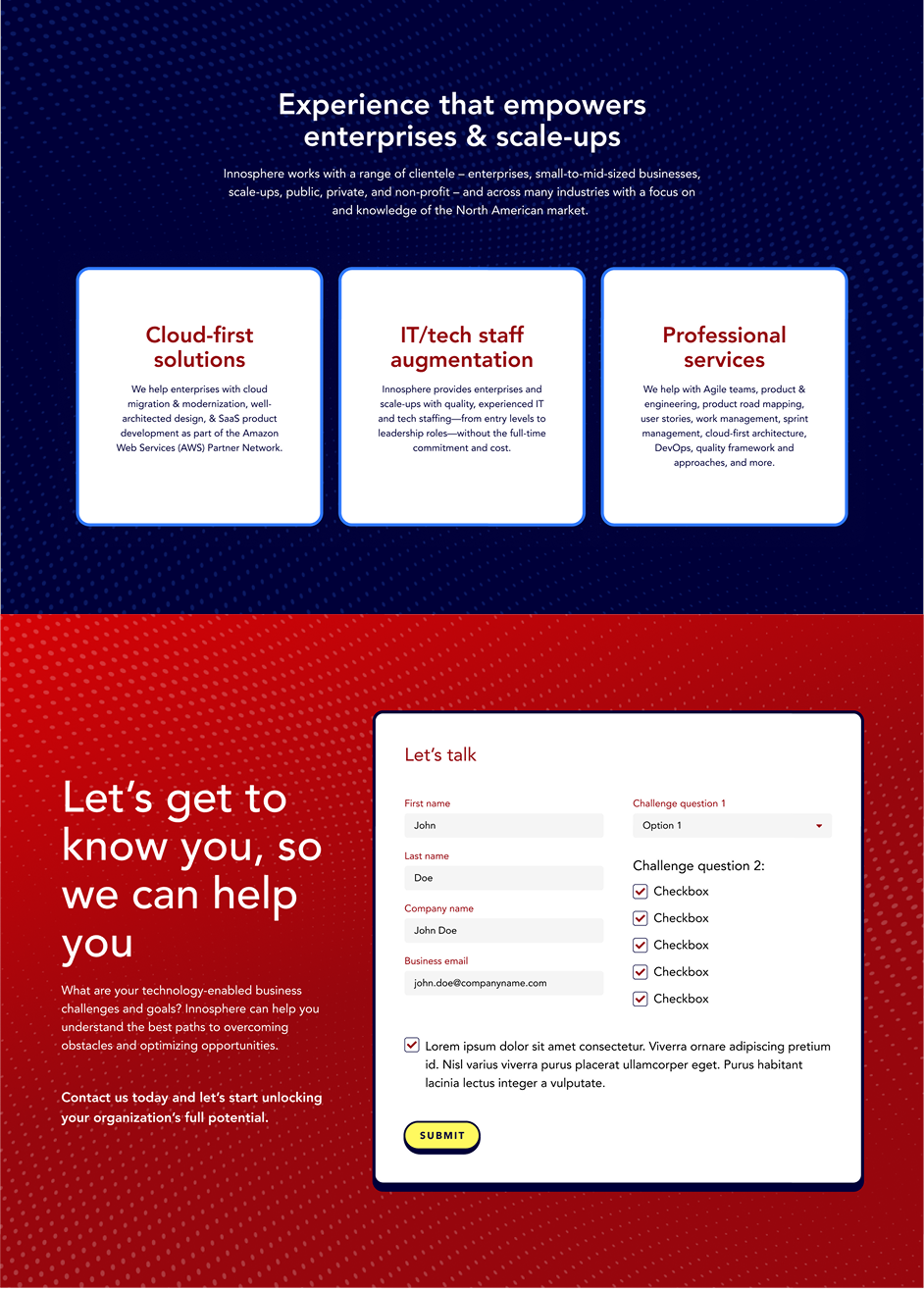The Innosphere website was often the drop off point for potential conversions. With a confusing user journey and one-dimensional visuals, qualified leads did not feel inclined to move forward. The site needed the following: